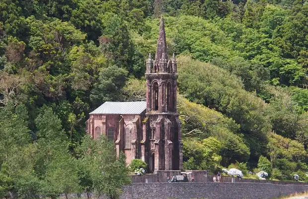 A Capela de Nossa Senhora das Vitórias é um templo único, nascido da devoção de José do Canto, por um voto feito durante a doença sofrida por sua esposa. Ele escolheu um local perto do lago da cratera de Furnas, com uma energia especial. Da arquitetura neogótica que imita algumas catedrais européias, tem vitrais vivos, infelizmente não pude ver de dentro porque estava fechado. Foi inaugurado em 1886. As janelas evocam a vida da Virgem do nascimento até a assunção, na Capela estão enterrados José de Canto e sua esposa.