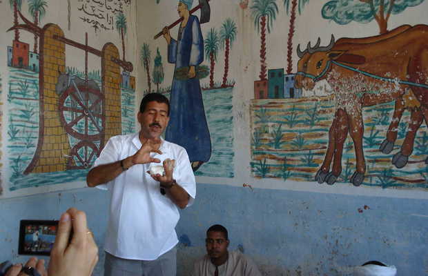 Nestas oficinas, trabalham de forma artesanal três tipos de alabastro: o branco, o castanho e o verde. Fazem-te uma pequena demonstração e depois passas à tenda na qual deves regatear, mas é curioso que sempre que dizes o preço pelo qual queres comprar, o guia que te acompanha discute um pouco com os da loja no seu idioma e melhora o preço um bocadinho. Por isso pergunto-me, será que aqui há truque? Os produtos que te oferecem são uma autêntica maravilha, mas o seu custo é elevado.
