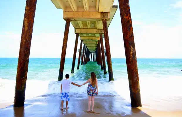 Um dia de sol incredível no verão de 2015, o mar estava lindo e naquele dia se pintou de paisagem para que meu amor e eu eternizasse esse momento inesquecível. Os turistas passeavam na passarela e nós buscamos um pedaço de paraíso por baixo dela, por ser mais deserto, o que eles não sabiam é que de baixo da ponte é onde se encontra a vista mais bonita.