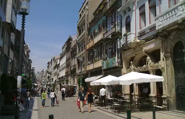 Possivelmente a rua mais emblemática e mais conhecida para o comercio do Porto. é nela que se situam o famoso café Majestic, a Igreja das Almas, e a Via Catarina Shopping.