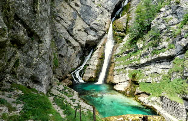Depois de 20 minutos por um caminho cheio de escadas em uma floresta muito bonita chegar a um mirador de madeira onde você pode ver a magnifica cachoeira Savica em forma da letra A Em mais de 60 metros de altura e é a fonte do rio Sava Danúbio tributário.